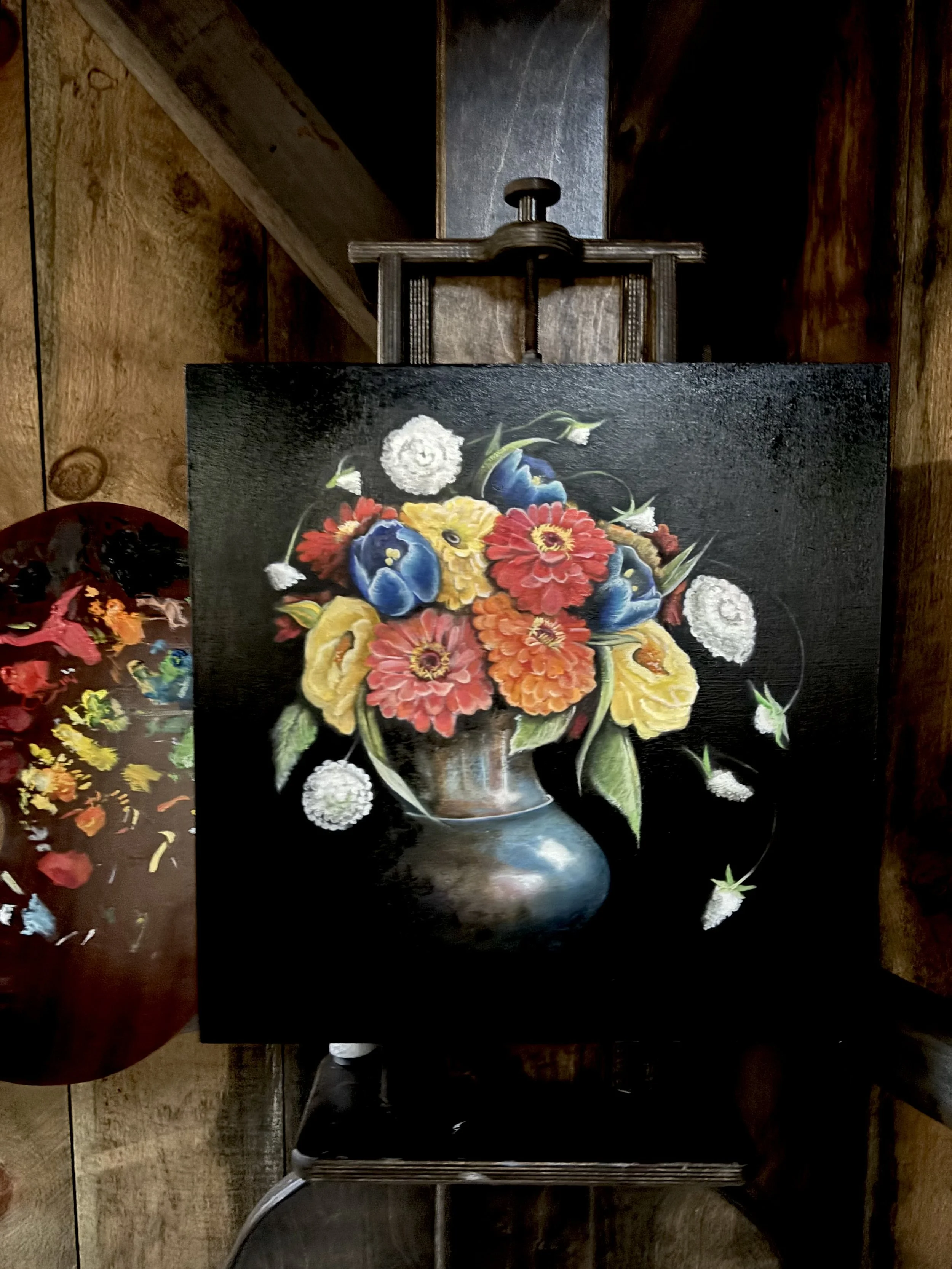 Janis works tucked in the heart of downtown Bolinas, a little coastal town, nestled in her garden. You are quite welcome to arrange for a visit to the studio. Enjoy talking about art, sip wine, coffee, or tea, view works in progress, and consider paintings available to acquire. Janis’ paintings are ideal for the soulful home curator and to bring depths of taste and meaning to your spaces.